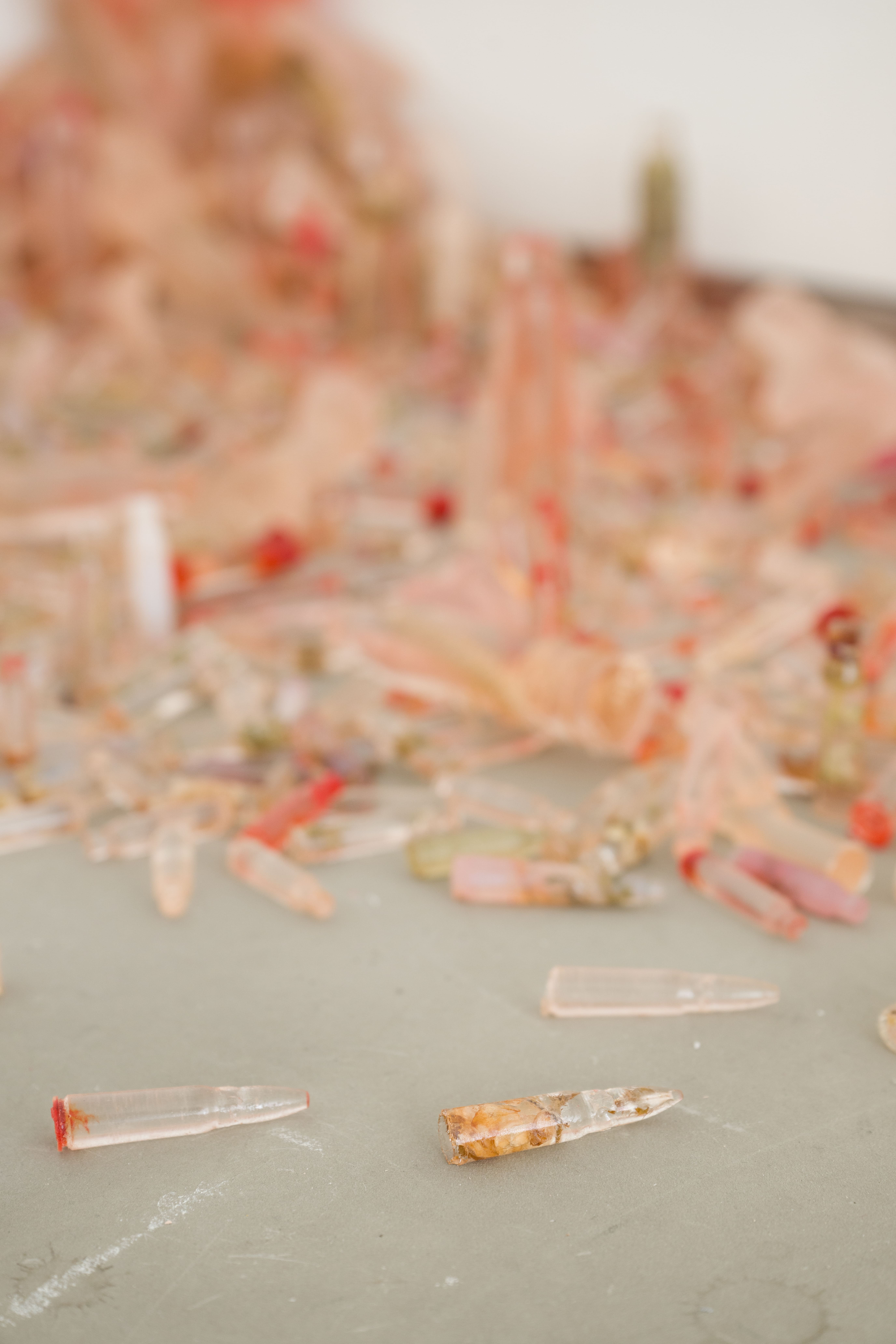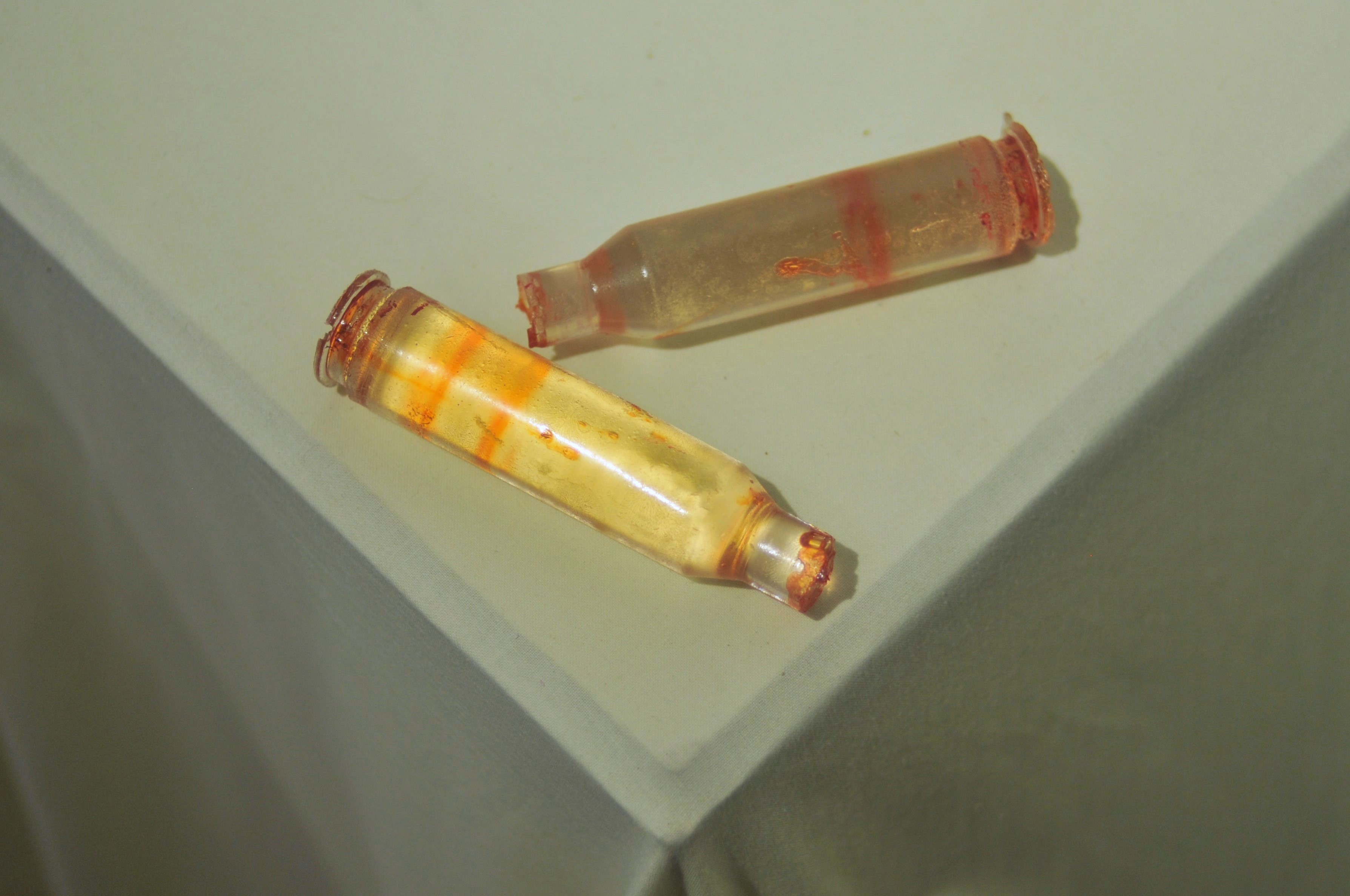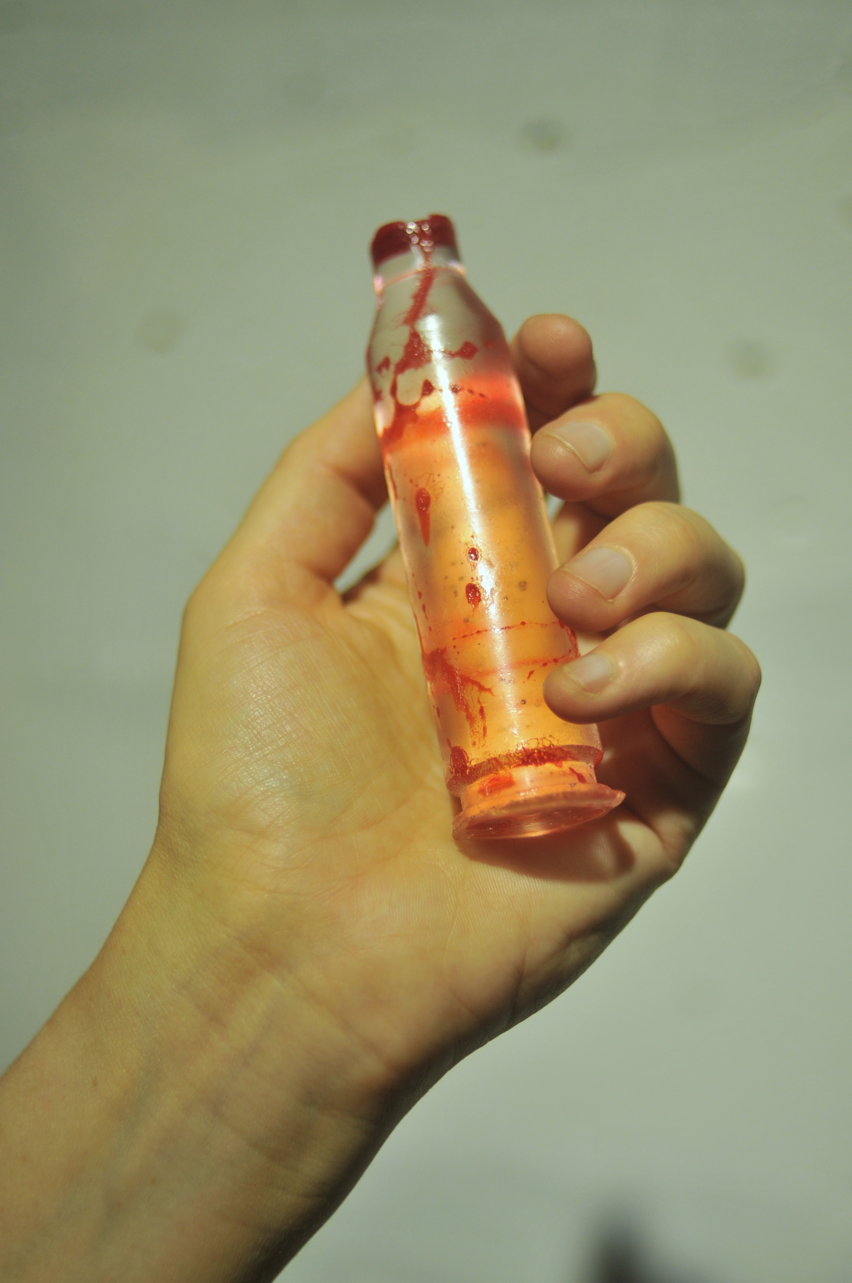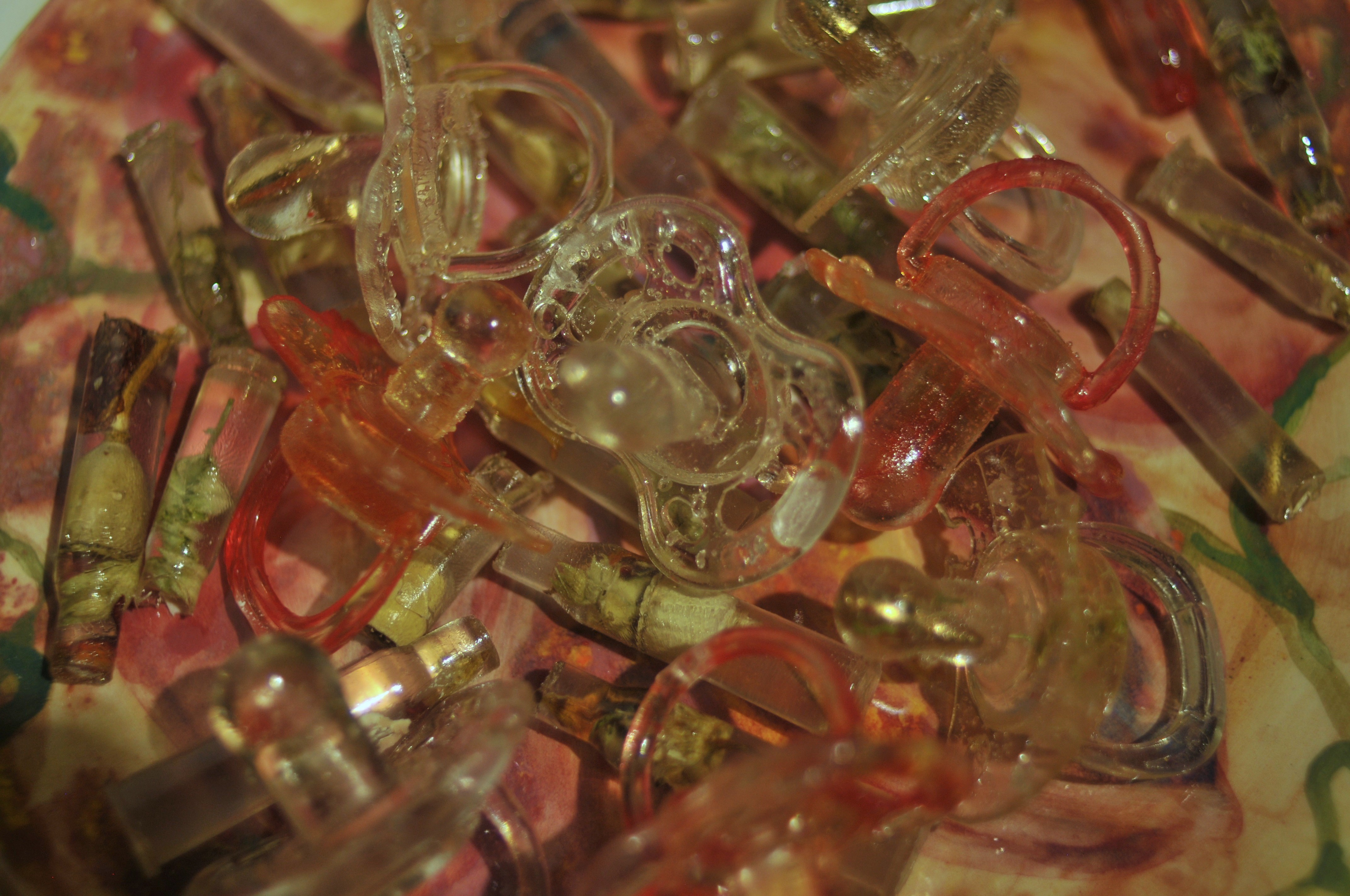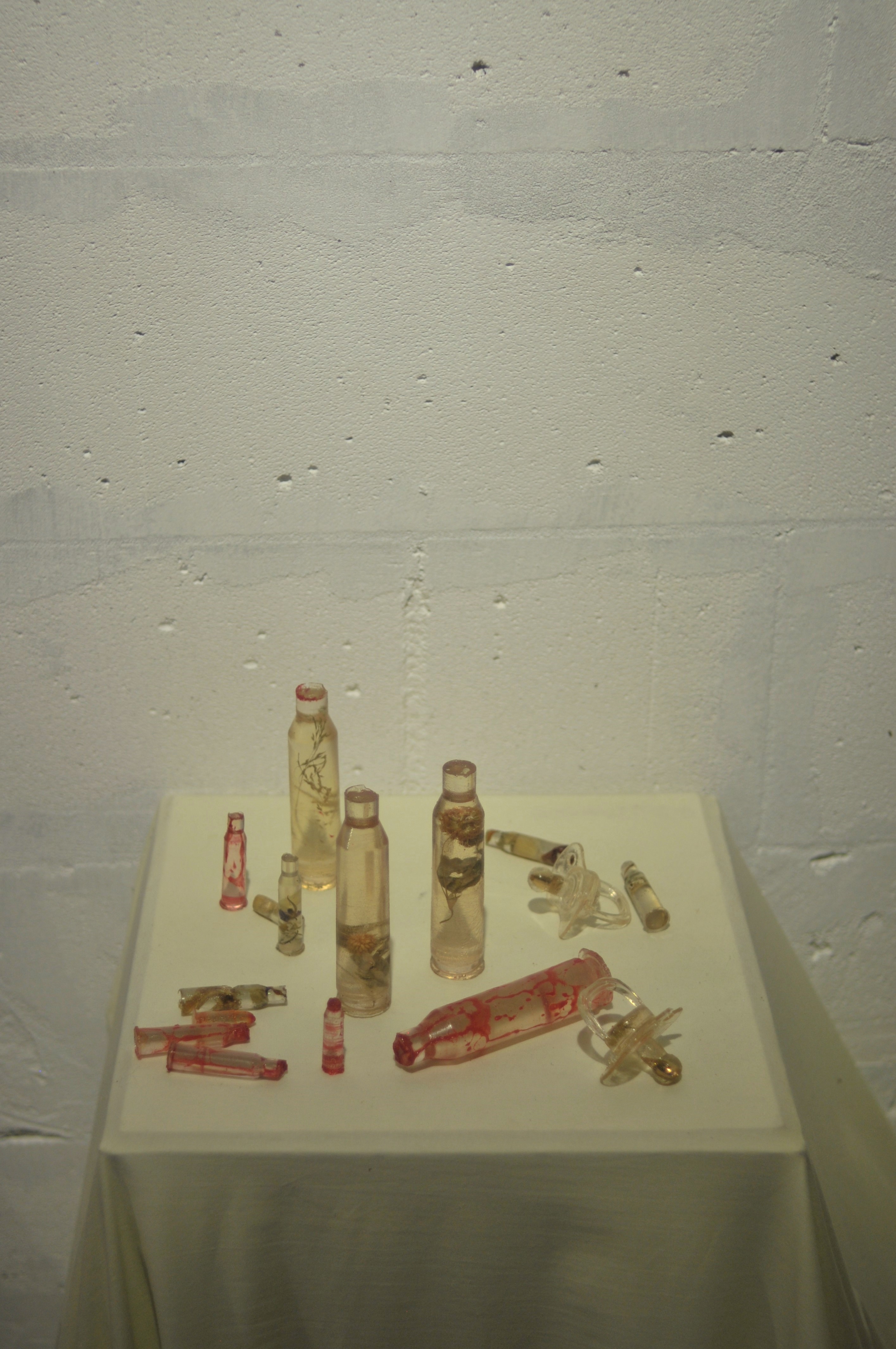 Polyester resin, dried herbs and flowers, dyes, casts made from real used cartridges that circulated in the hands of those connected to the front line